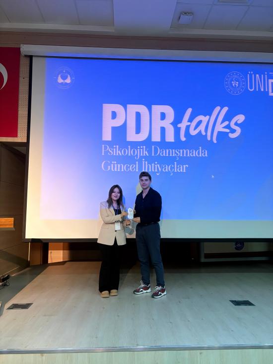 Bölümümüz öğretim elemanı Arş. Gör. Ayşenaz Ekin Duman, 27-28 Kasım 2025 tarihlerinde Erciyes Üniversitesi Psikolojik Danışma ve Rehberlik Kulübü tarafından düzenlenen ÜNİDES destekli "PDR Talks: Psikolojik Danışmada Güncel İhtiyaçlar" isimli proje kapsamında "Duygusal Olarak Erişilebilir Ebeveynlik" konulu bir seminer verdi. Erciyes Üniversitesi Eğitim Fakültesi'nde gerçekleşen seminere, çok sayıda öğretim üyesi ve farklı illerden gelen öğrenciler katıldı.